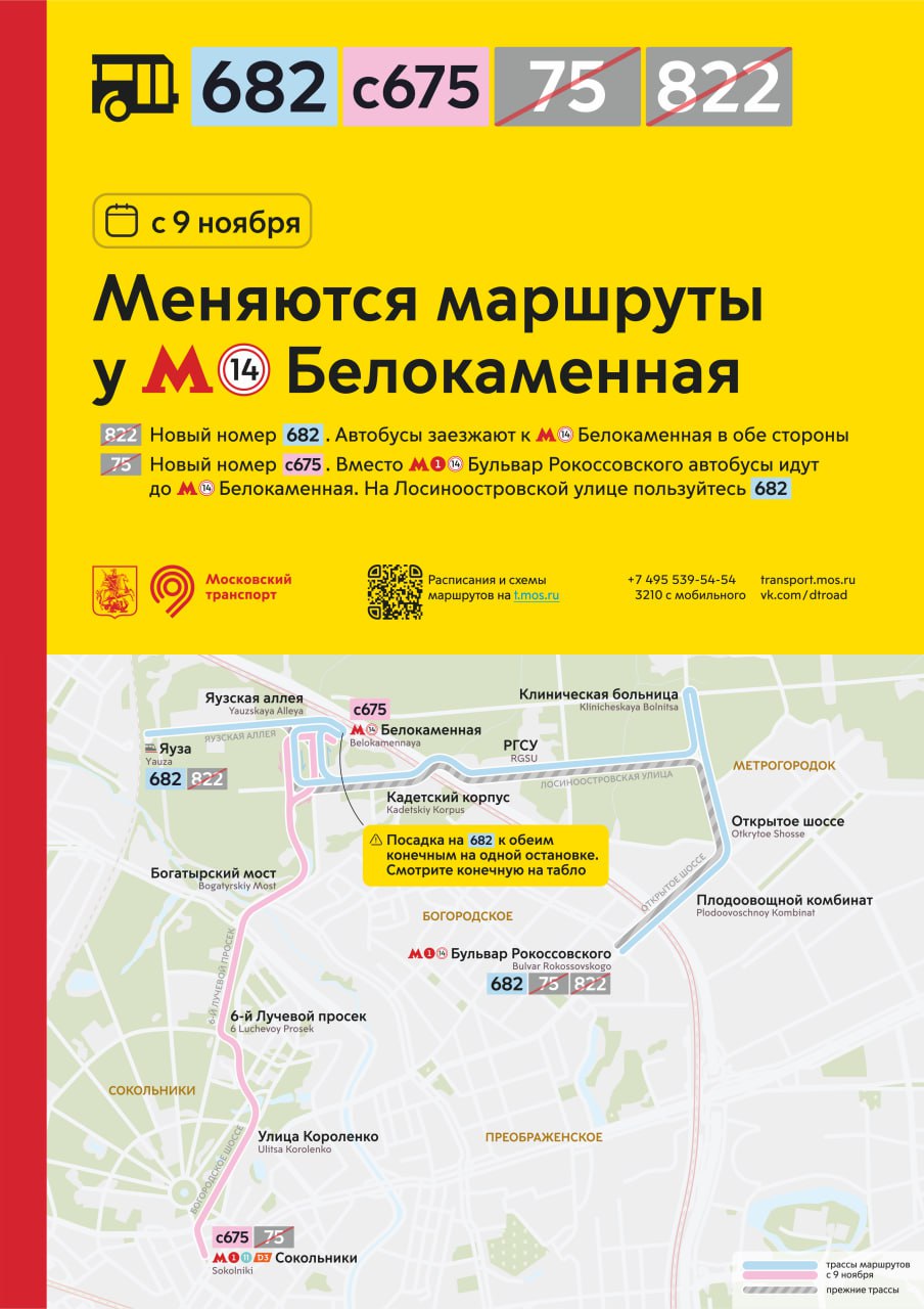 с675. Вместо метро «Бульвар Рокоссовского» автобусы пойдут до МЦК Белокаменная.