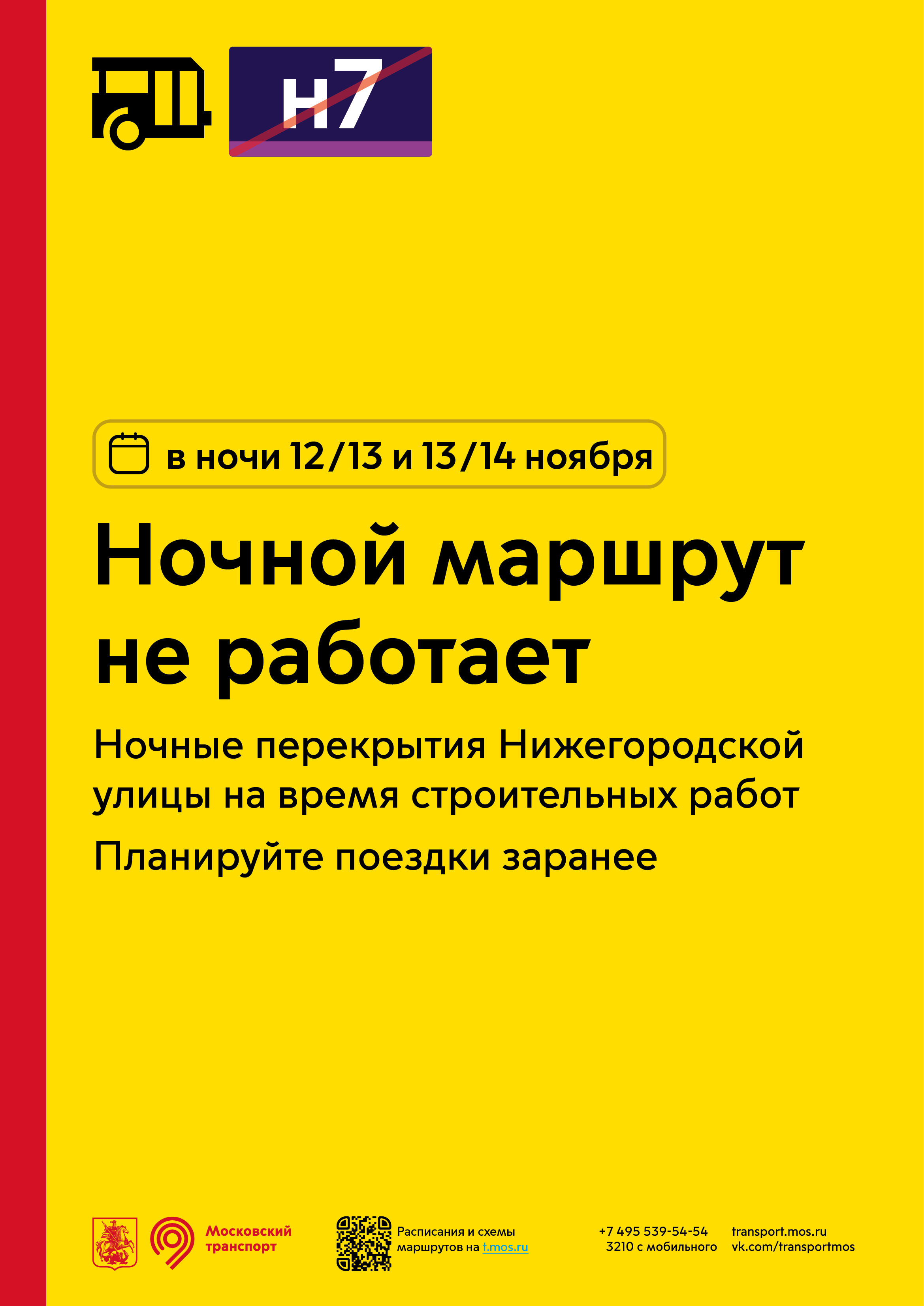 Ночной маршрут н7 временно не будет работать