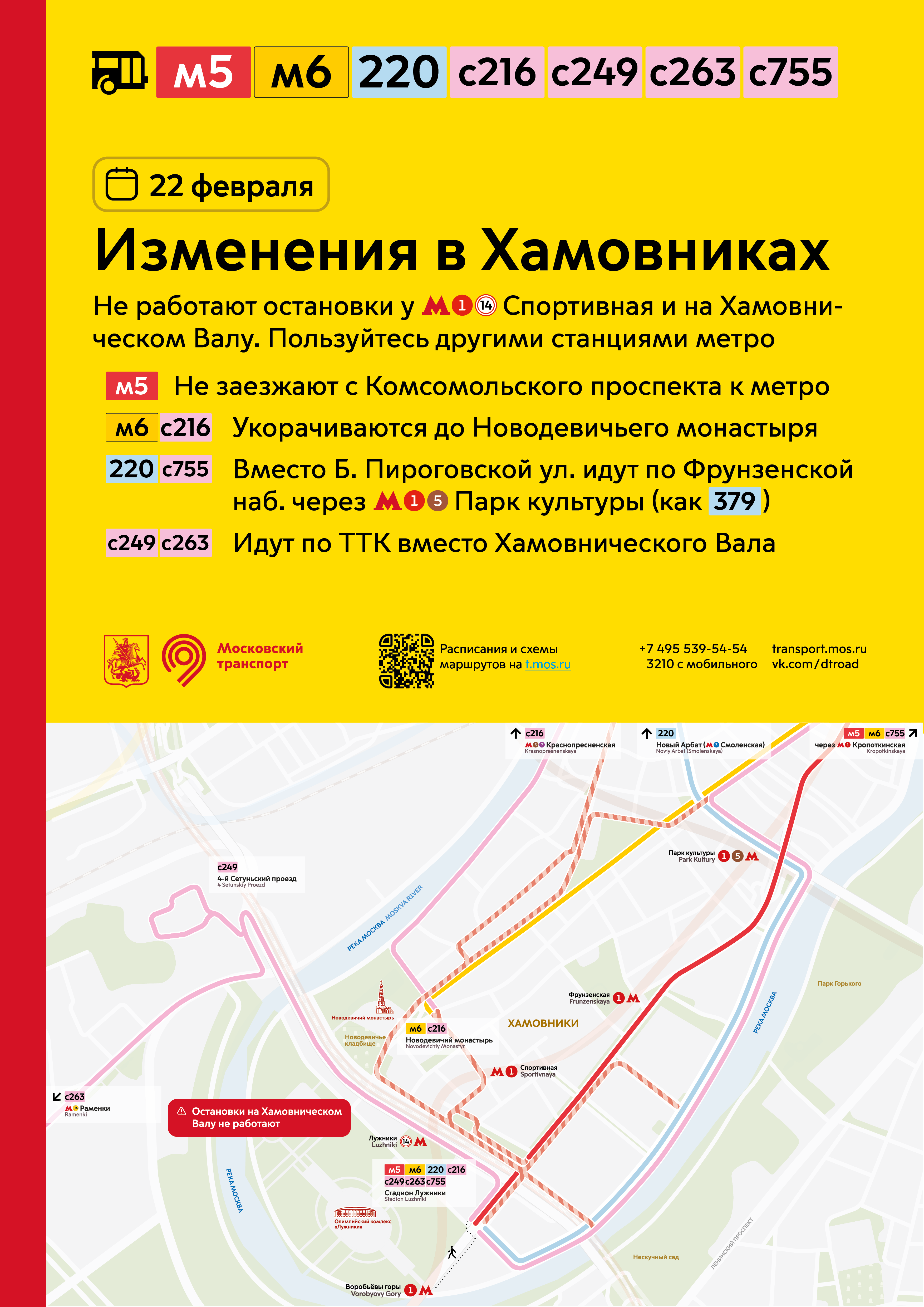 22 февраля будут изменены маршруты в Хамовниках.